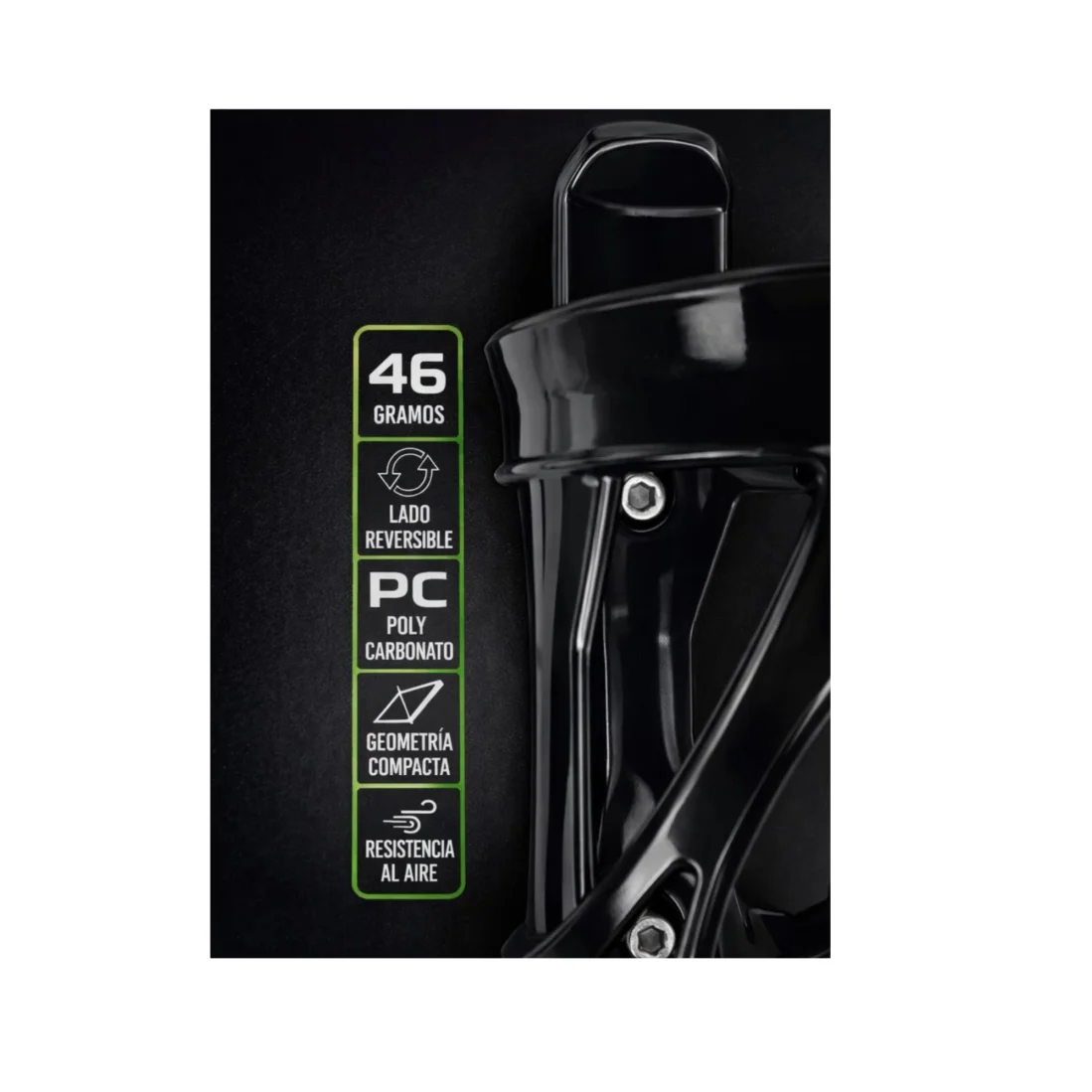 Su diseño de lado reversible permite adaptarse mejor a distintos montajes y preferencias de uso, mientras que su geometría compacta favorece una instalación práctica y una estética limpia en la bicicleta. Además, su estructura ayuda a ofrecer resistencia al aire, aportando un look moderno y eficiente.